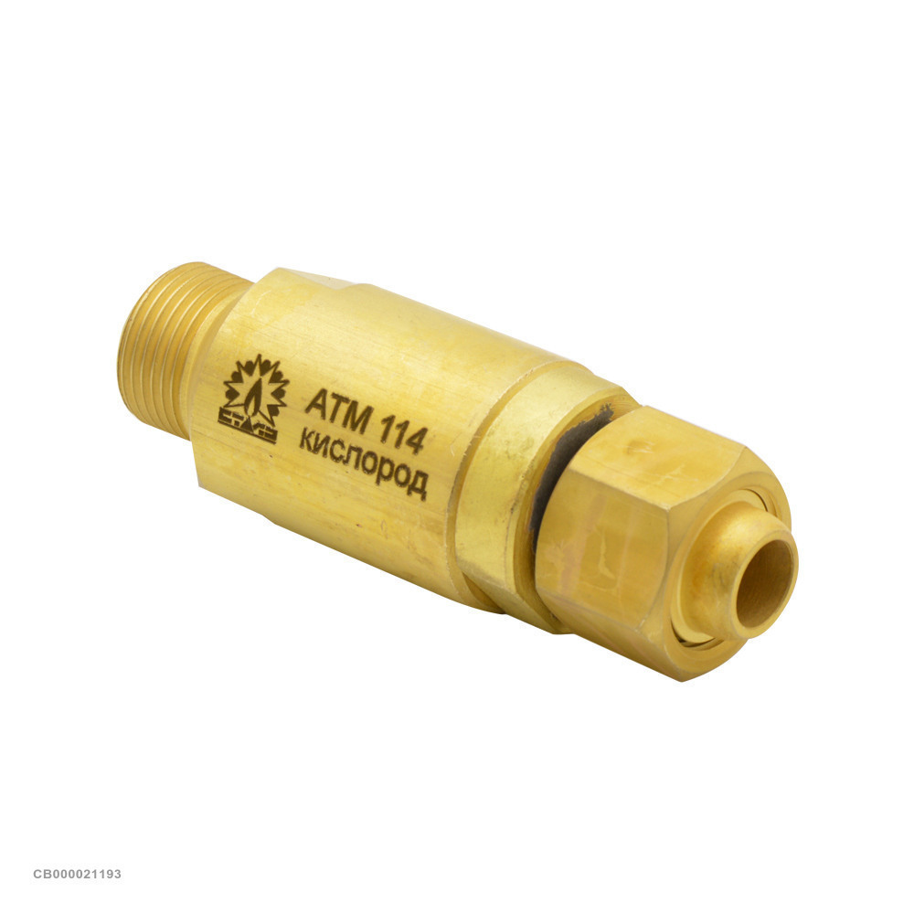 Клапан обратный металлургический НОРД-С АТМ 114, предотвращающий обратный поток газа и пламени при газопламенной обработке металлов. Можно использовать с резаками АТМ15 и АТМ128. Широко применяется в металлургической промышленности.