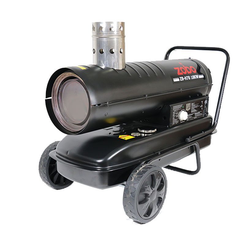 Поток воздуха с помощью встроенного вентилятора втягивается в камеру, где происходит его смешивание с распыленным топливом. Трансформаторная система обеспечивает зажигание смеси, и горячий воздух выбрасывается из камеры с продуктами сгорания.