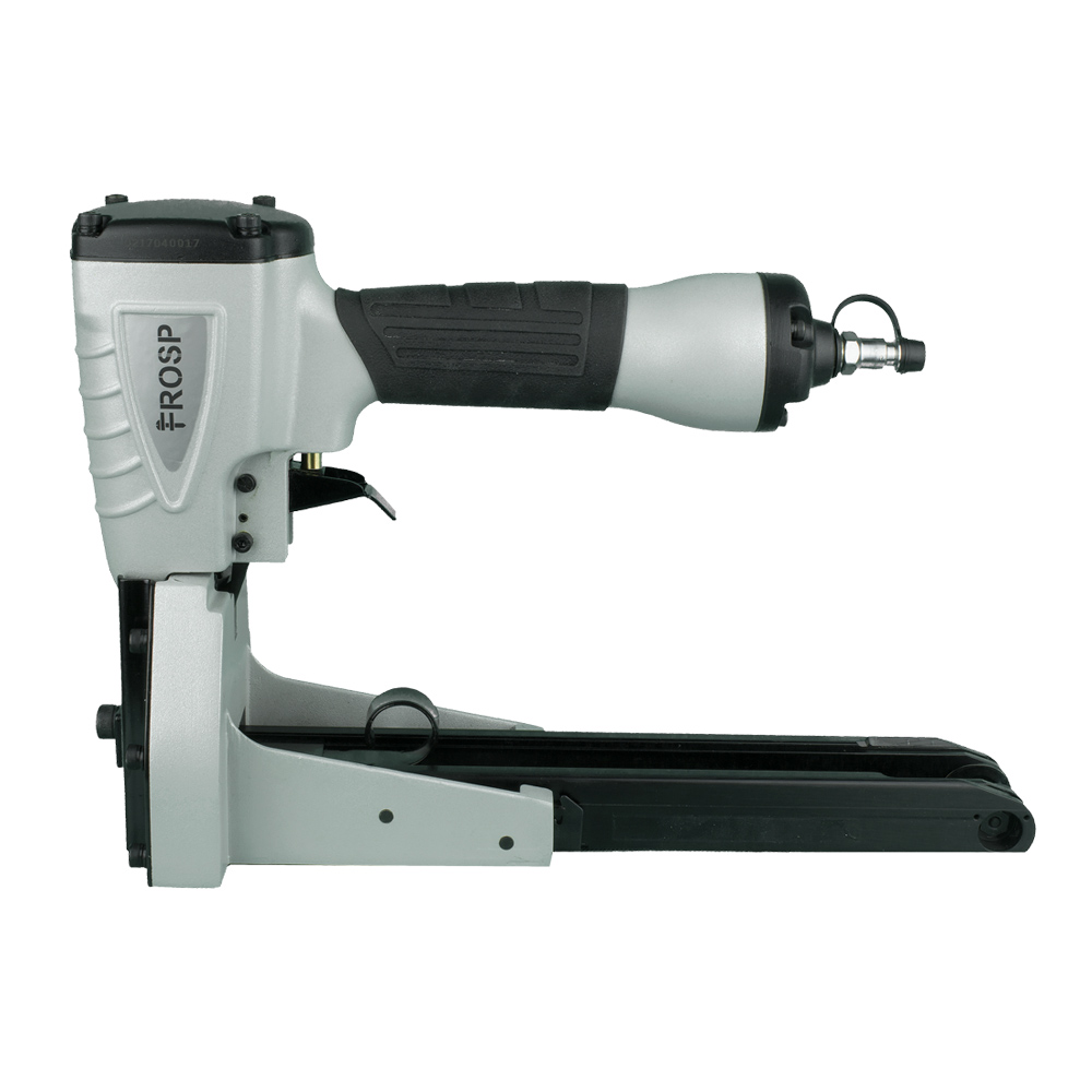 FROSP R9905 – степлер для коробок, работающий на сжатом воздухе. Его используют вместе с компрессором. Пневматический инструмент позволяет выполнить в 2-3 раза больше работы по сравнению с механическим степлером.